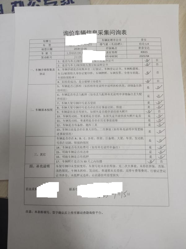 车架号是否受损 使用性质 非营运