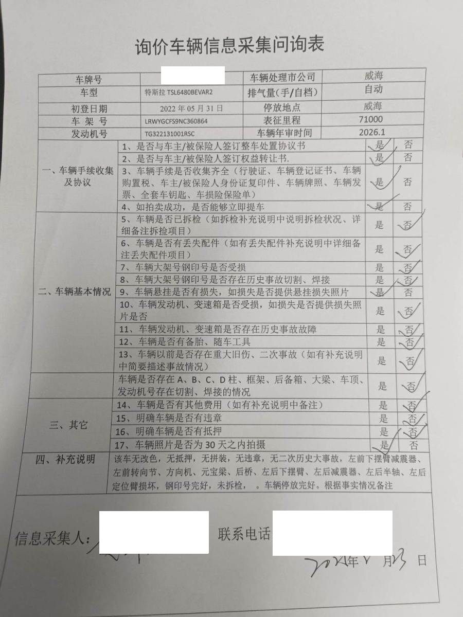 车架号是否受损 使用性质 非营运