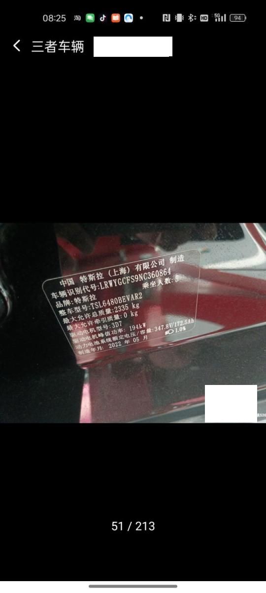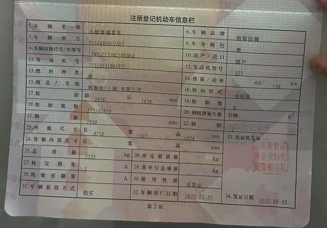 初次登记日期 2022-06-08 车辆名称 特斯拉Model