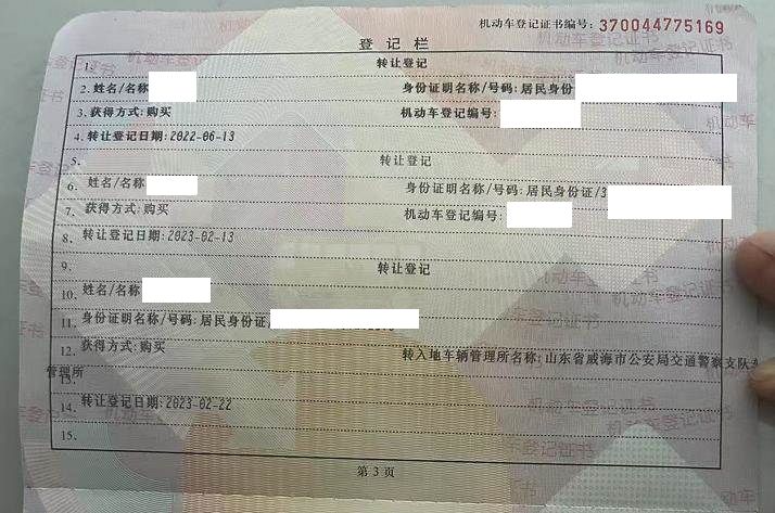 车辆归属地 山东省威海市 车辆停放仓库 山东省威海市
