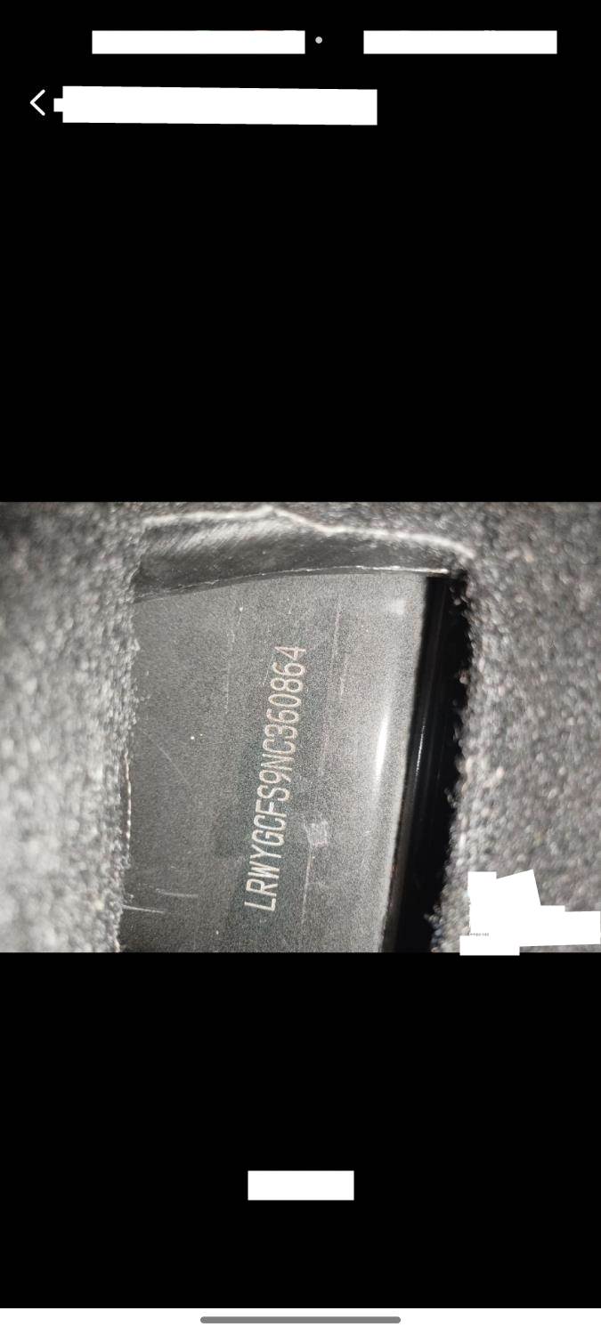 底盘号码 LRWYGCFS9NC360864 变速箱类型 自动