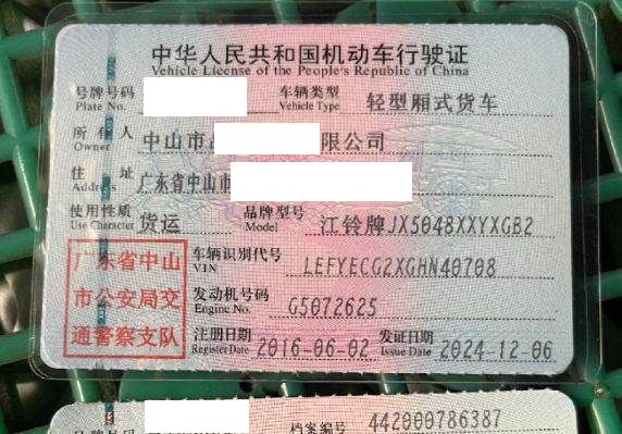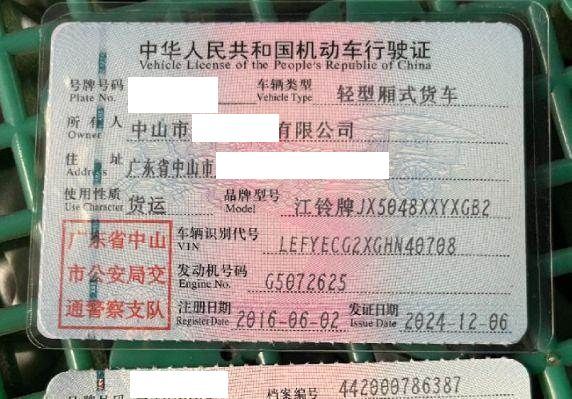 车辆归属地 广东省中山市 车辆停放仓库 广东省中山市