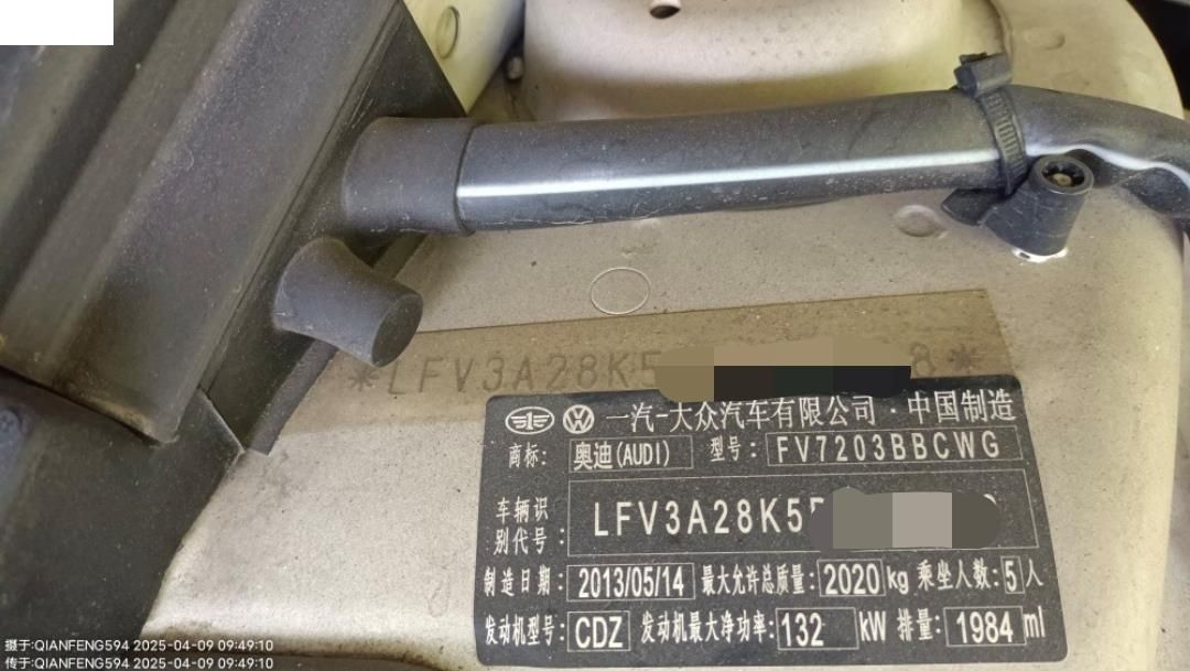 初次登记日期 2013-08-15 车辆名称 奥迪A4L