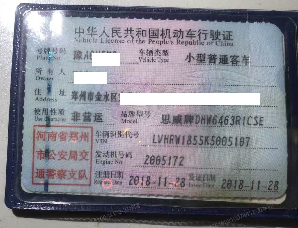 车辆归属地 河南省郑州市 车辆停放仓库 河南省新乡市卫滨区