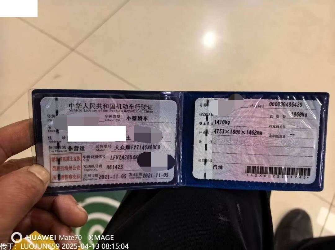 初次登记日期 2021-11-05 车辆名称 大众 速腾