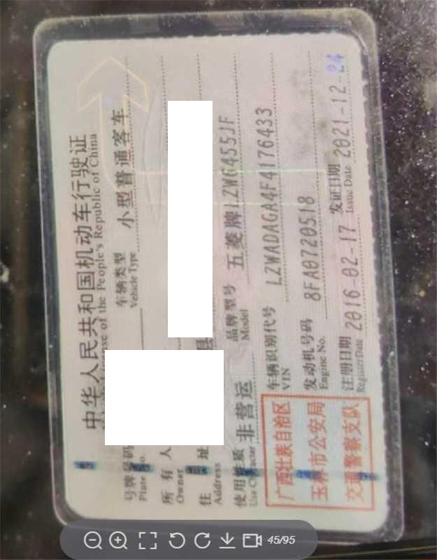 车牌号 桂****** 品牌 五菱