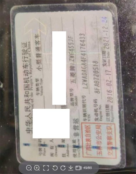 车辆归属地 广西壮自治区玉林市 车辆停放仓库 广东省东莞市