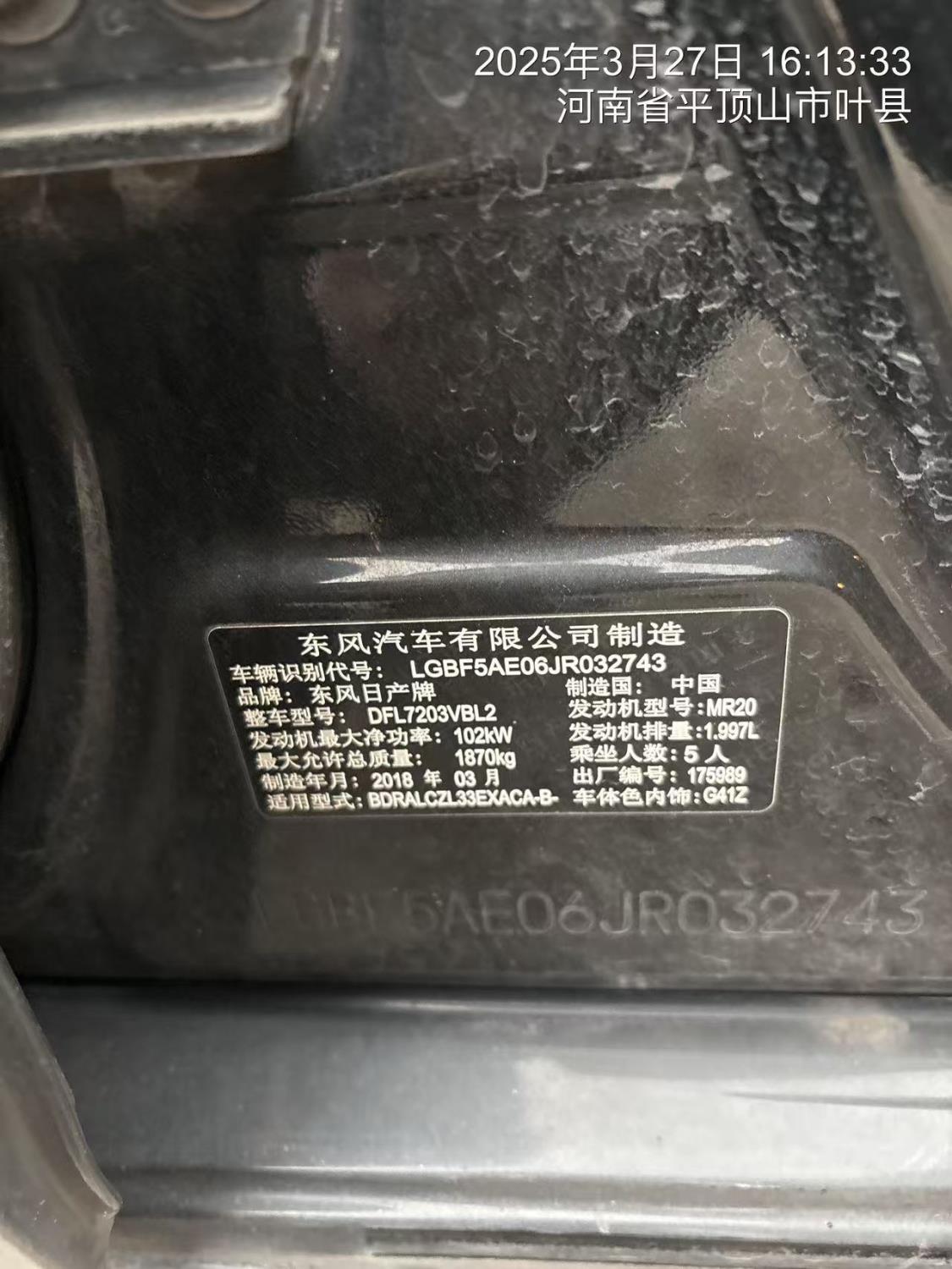 初次登记日期 2018-04-08 车辆名称 日产 天籁