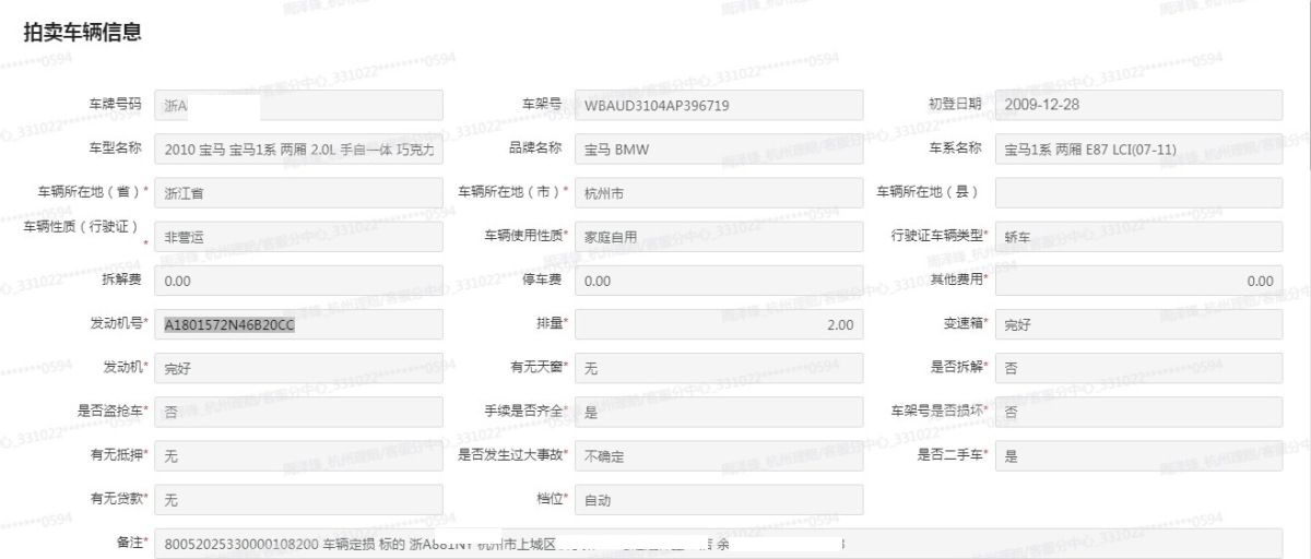 车牌号 浙****** 品牌 宝马