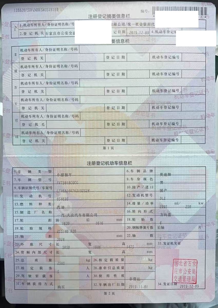 车牌号 冀****** 品牌 奥迪