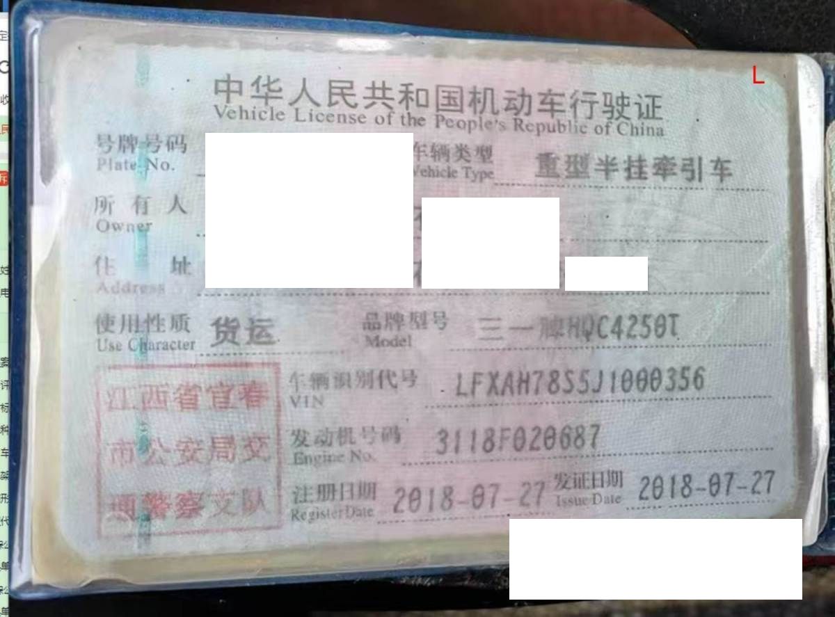 初次登记日期 2018-07-27 车辆名称 三一重卡