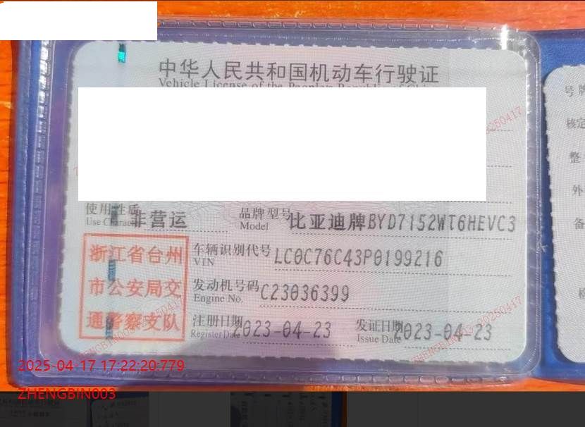 车牌号 浙****** 品牌 比亚迪