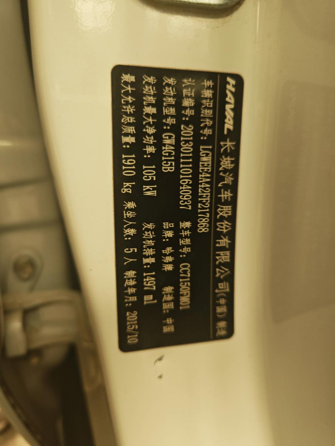初次登记日期 2015-11-20 车辆名称 哈弗H2
