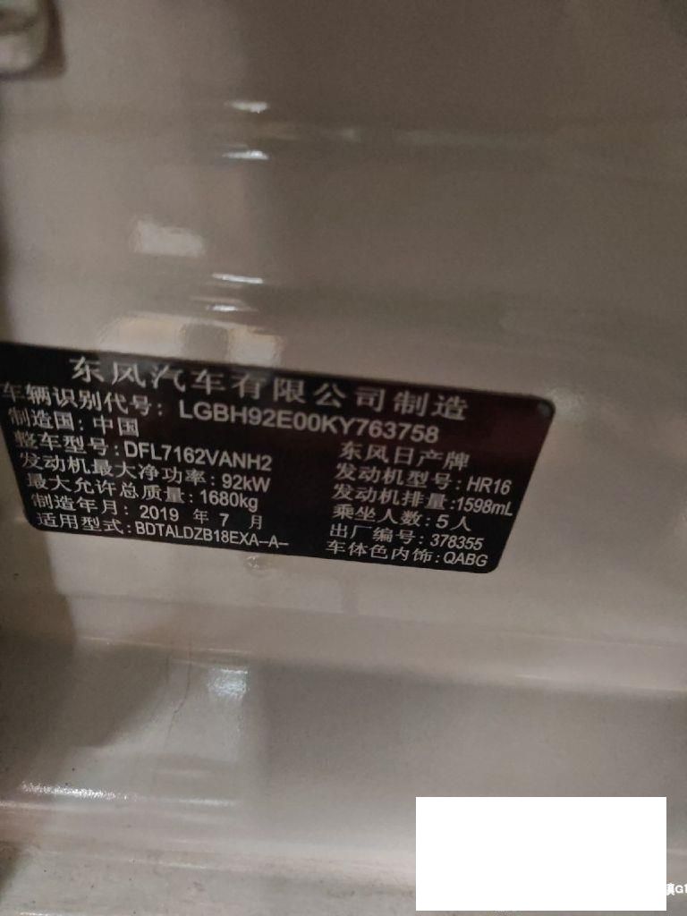 初次登记日期 2019-08-09 车辆名称 日产 轩逸