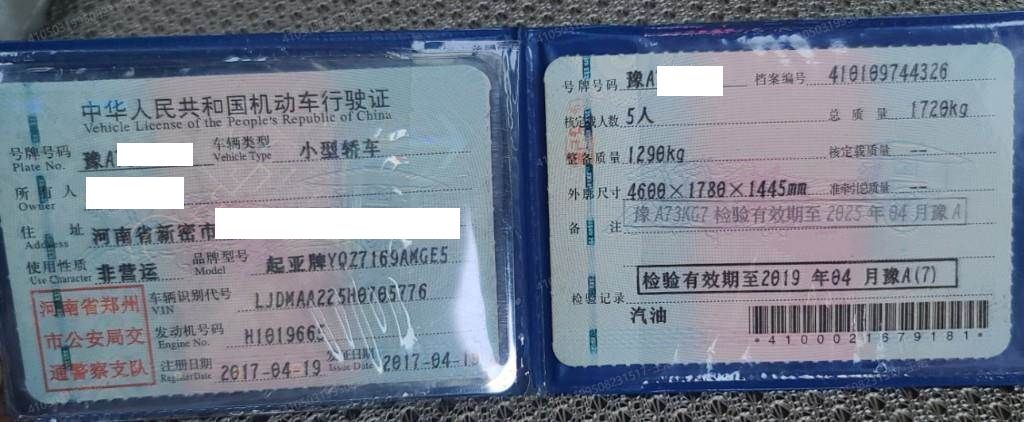 车牌号 豫****** 品牌 起亚