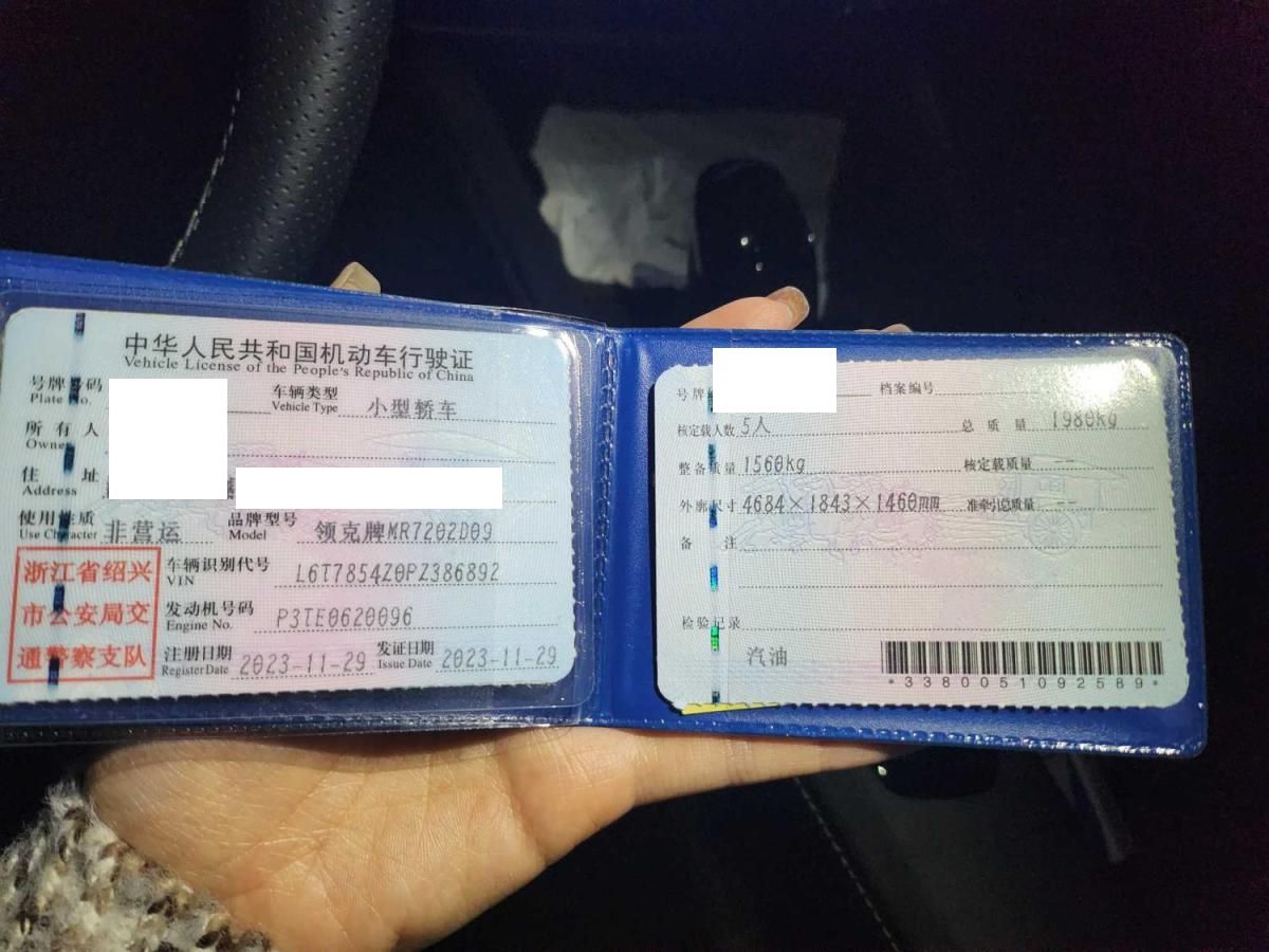 车牌号 浙****** 品牌 领克