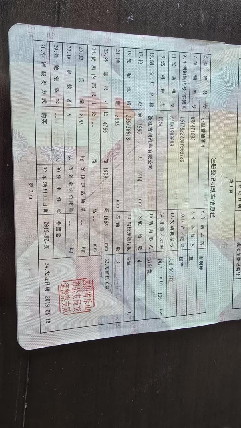 初次登记日期 2019-05-10 车辆名称 吉利汽车 嘉际