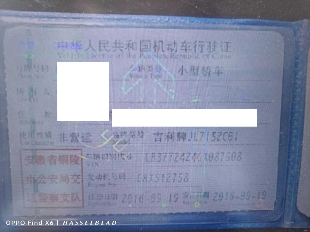 初次登记日期 2016-09-19 车辆名称 吉利汽车 远景