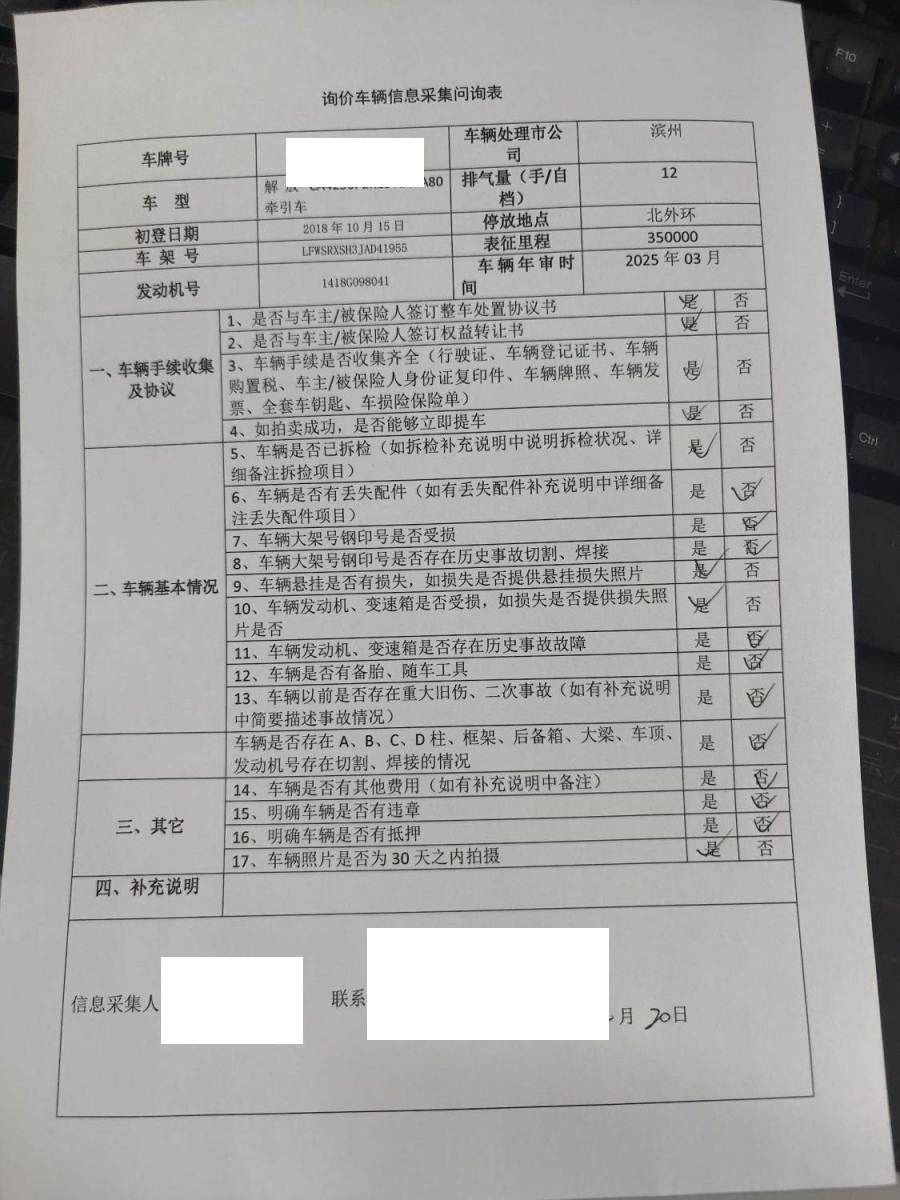 车牌号 鲁****** 品牌 解放