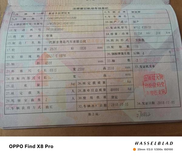 初次登记日期 2018-11-05 车辆名称 解放牌