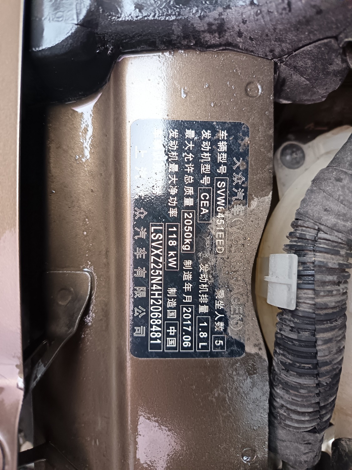 底盘号码 LSVXZ25N4H2068481 变速箱类型 手自一体