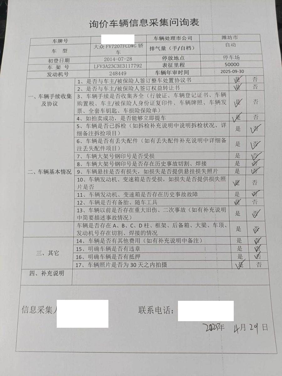 拍卖编号 N202504300150 事故类型 碰撞车
