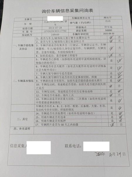 车架号是否受损 使用性质 非营运