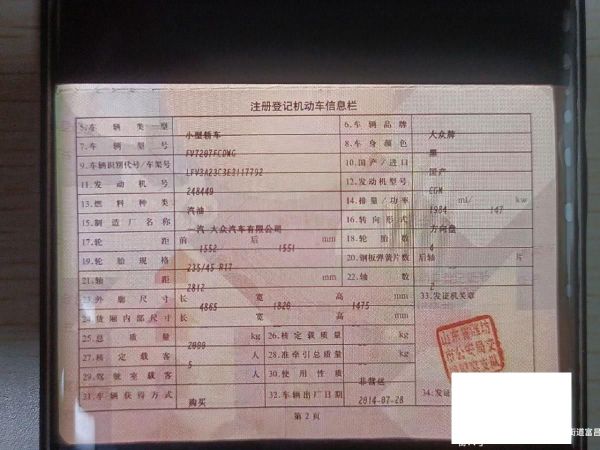 初次登记日期 2014-07-28 车辆名称 大众 迈腾