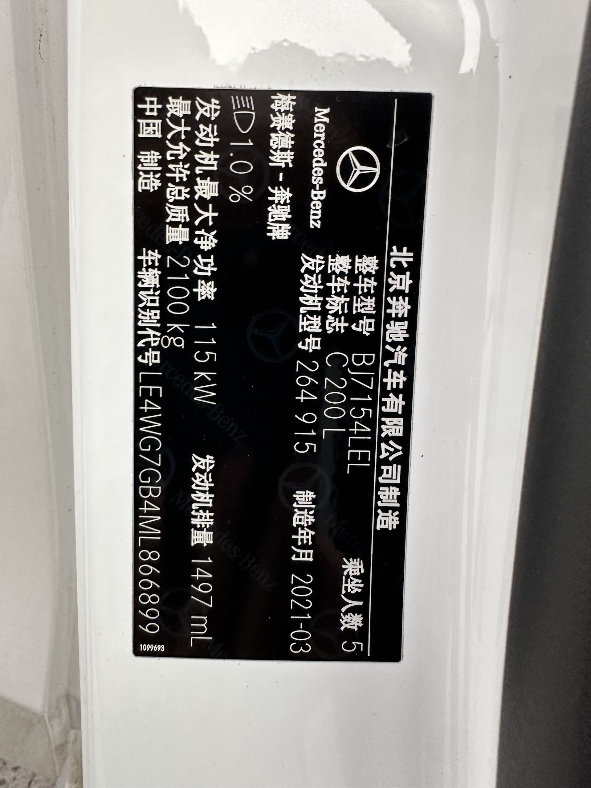初次登记日期 2021-06-03 车辆名称 奔驰C200L
