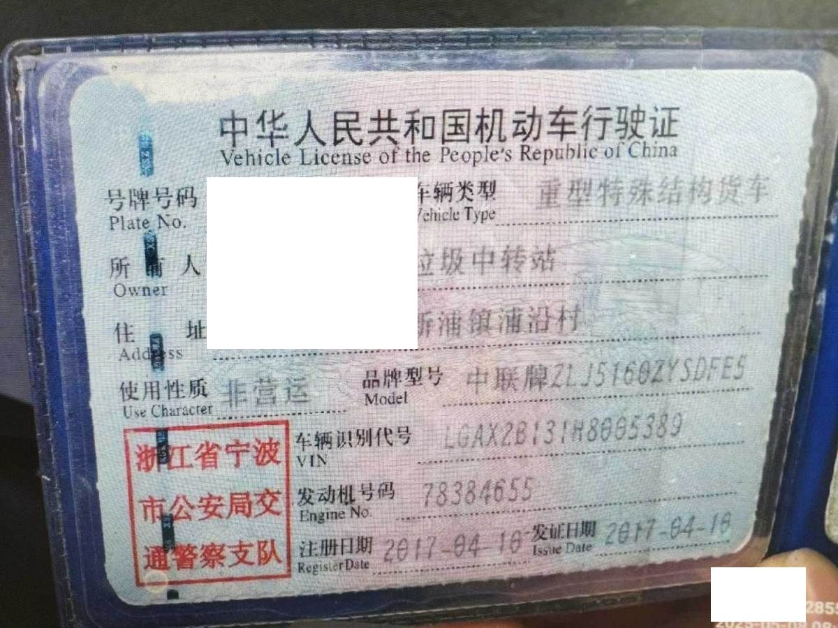 初次登记日期 2017-04-10 车辆名称 中联牌