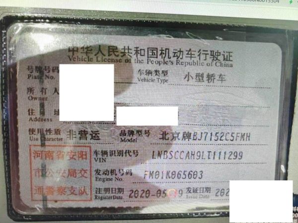初次登记日期 2020-05-19 车辆名称 北京汽车 北京