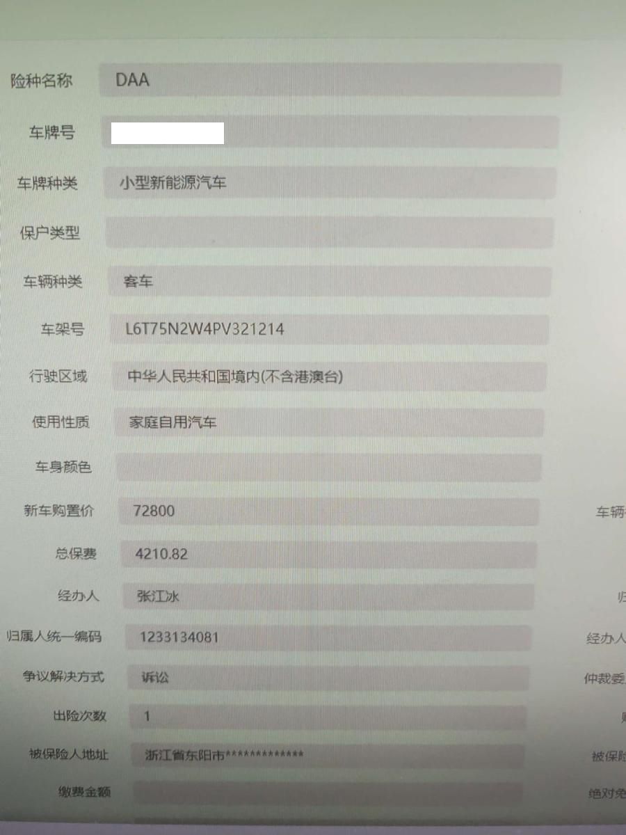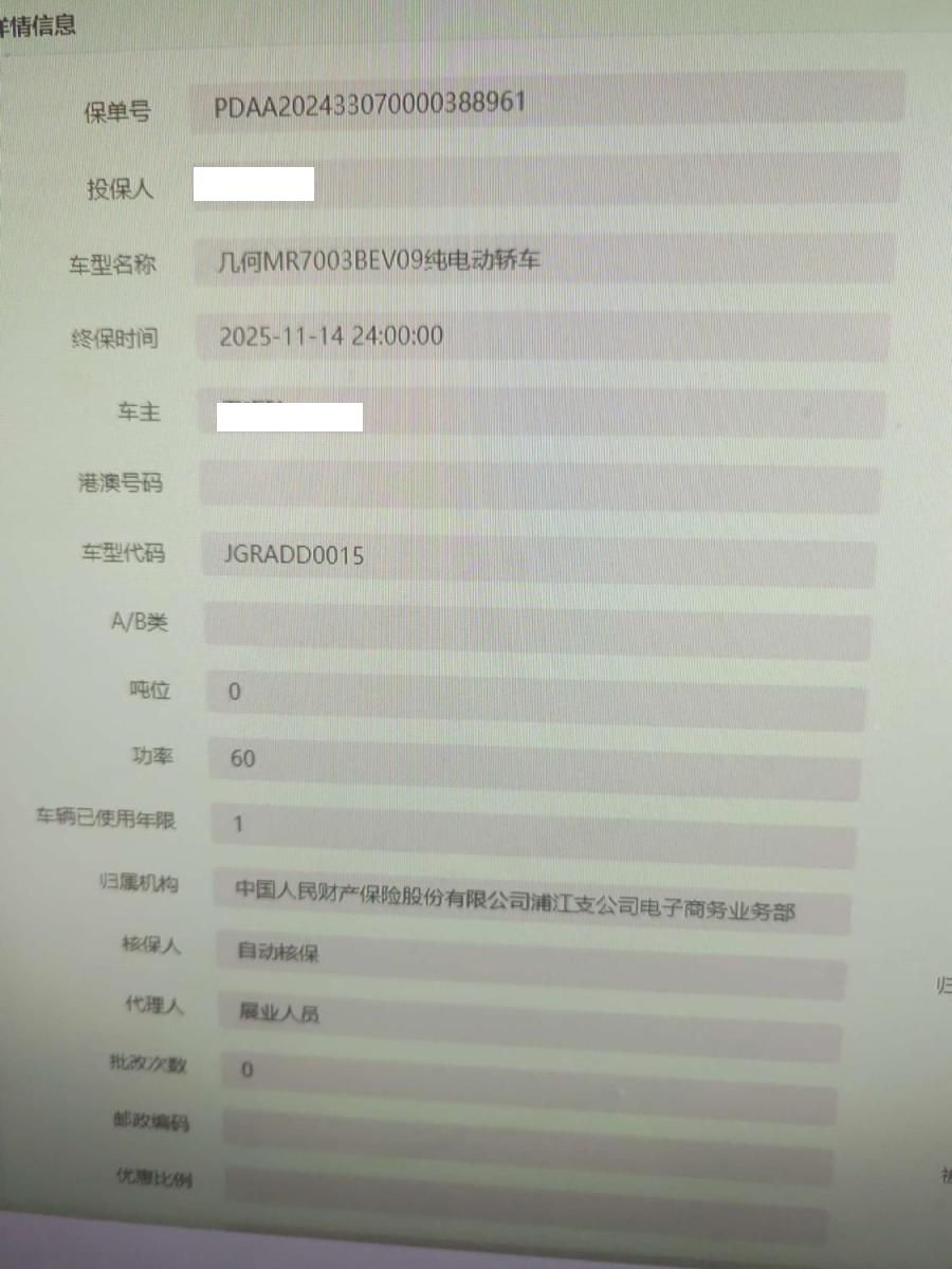 车牌号 浙****** 品牌 吉利