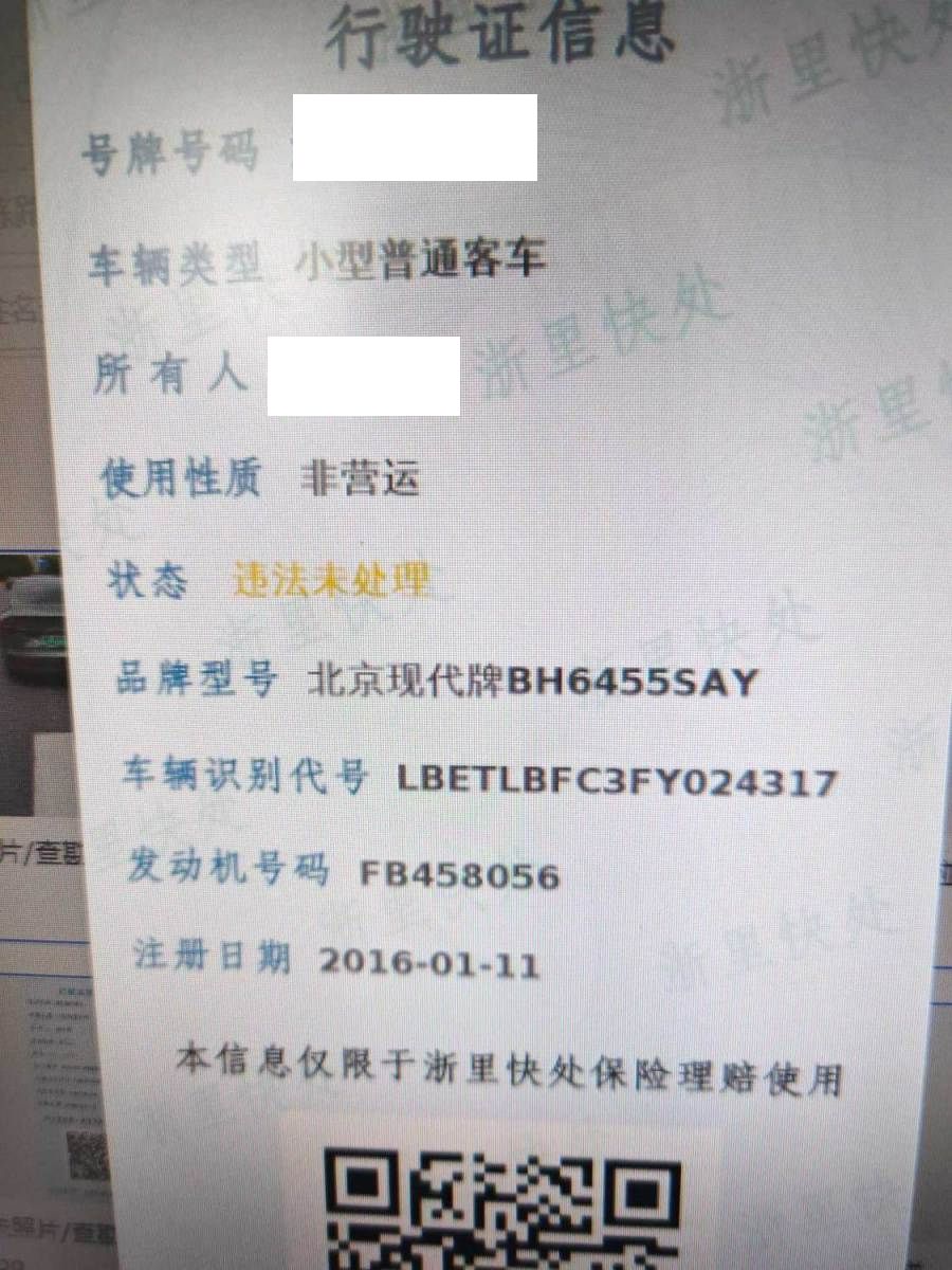 车牌号 浙****** 品牌 现代