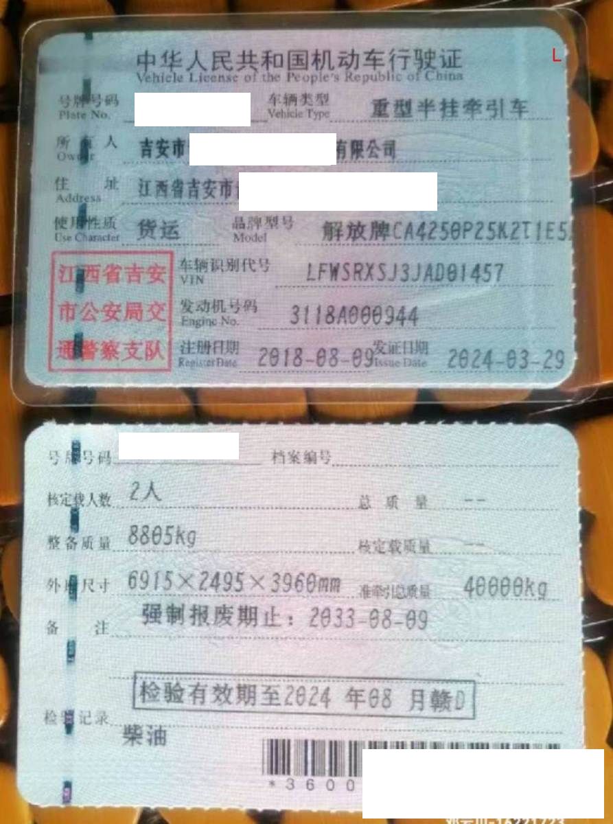 车牌号 赣****** 品牌 解放