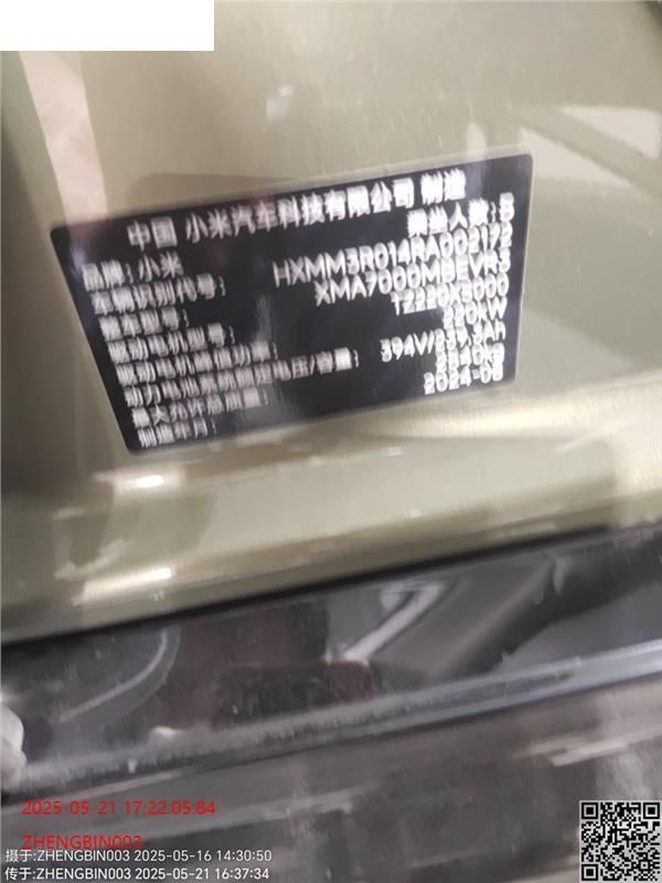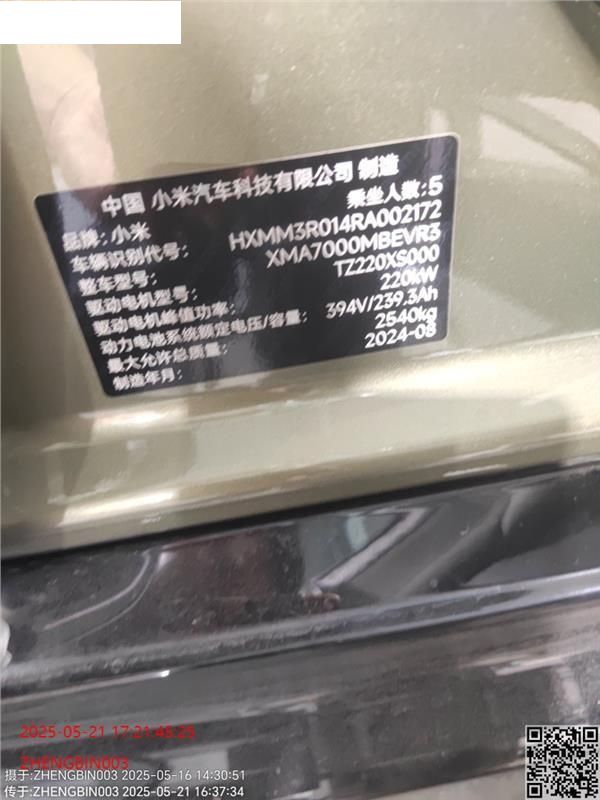 初次登记日期 2024-08-27 车辆名称 小米牌