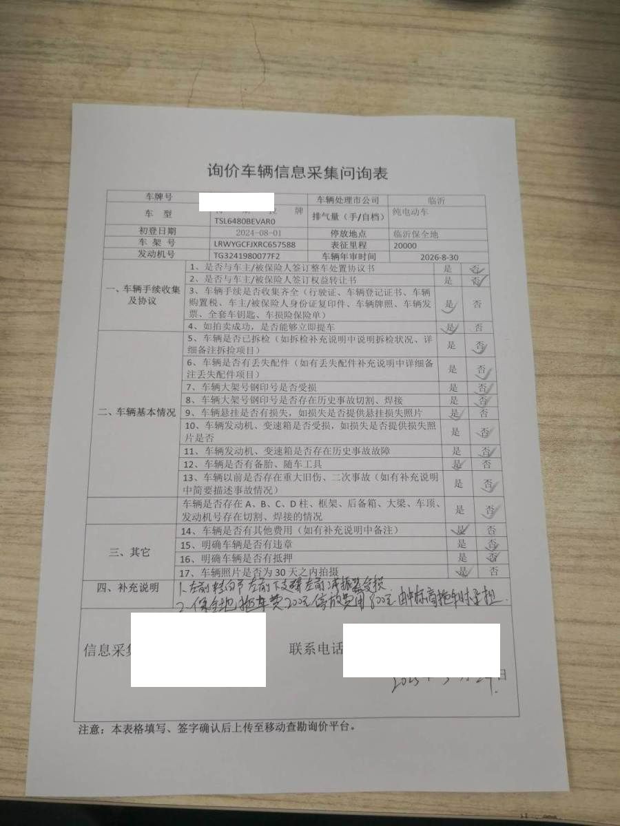 车架号是否受损 使用性质 非营运
