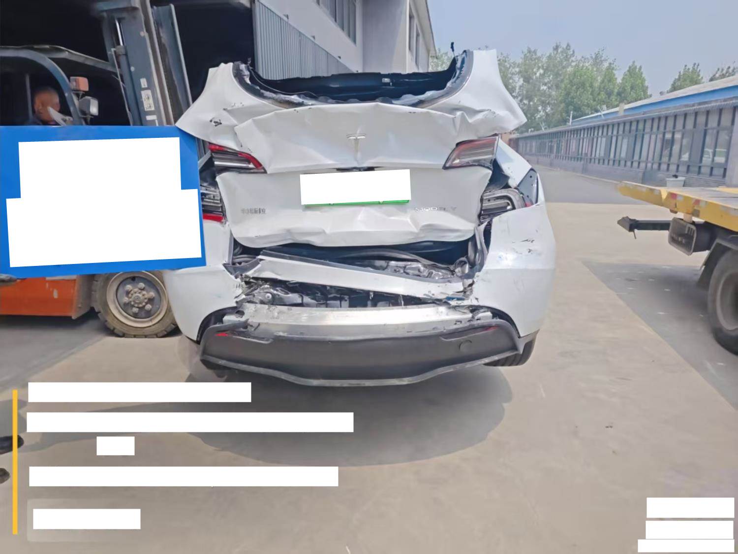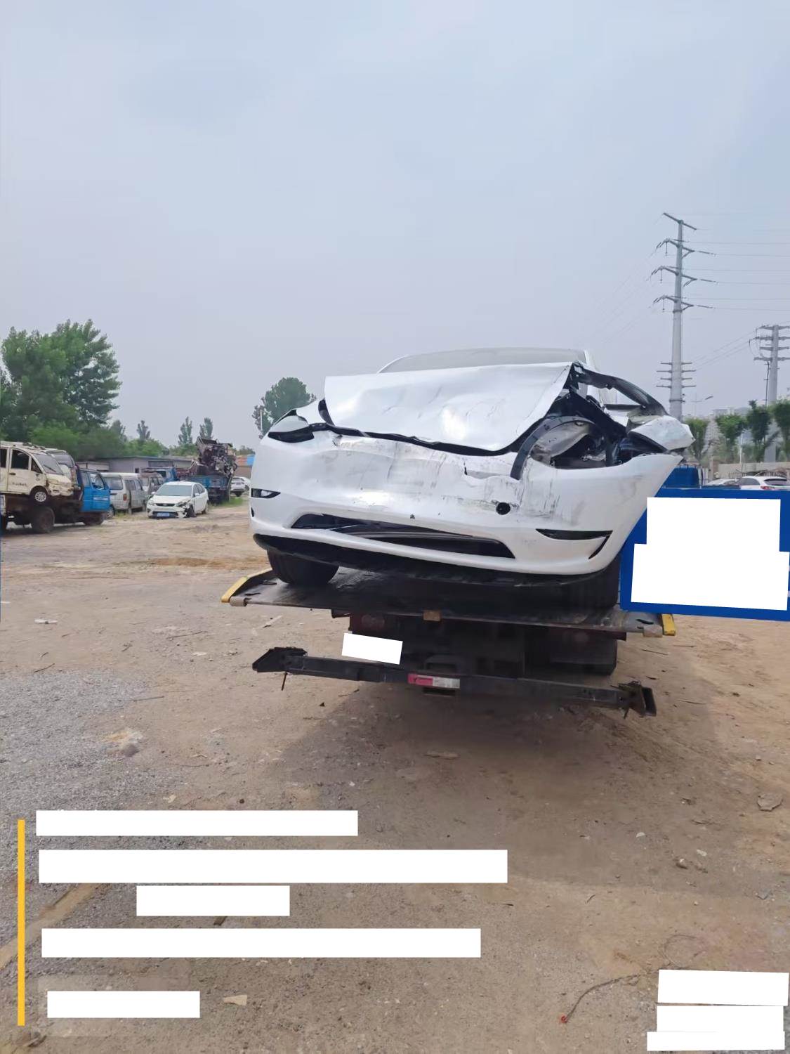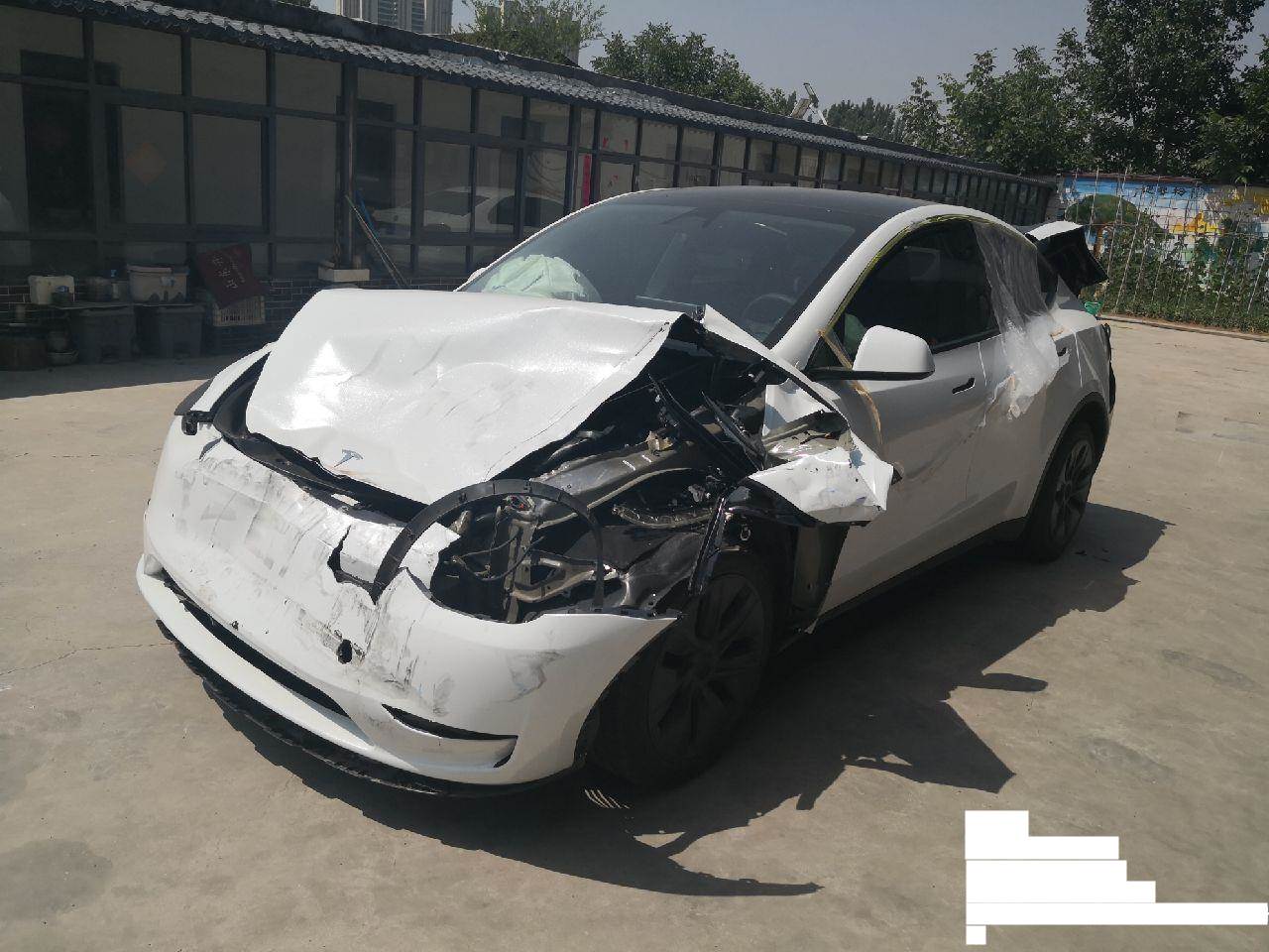 该车辆前部底部内部右侧左侧后部受损较重。该车辆驱动电机电池未损坏。