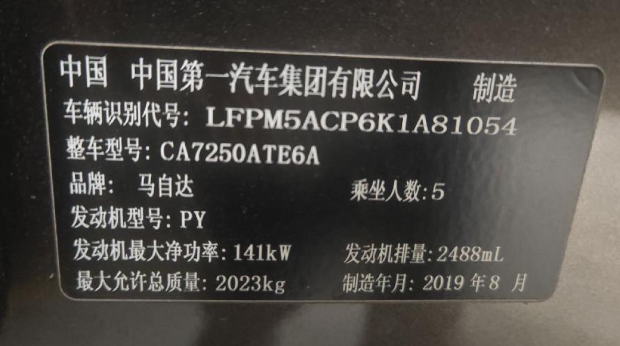 初次登记日期 2019-10-14 车辆名称 马自达 阿特兹