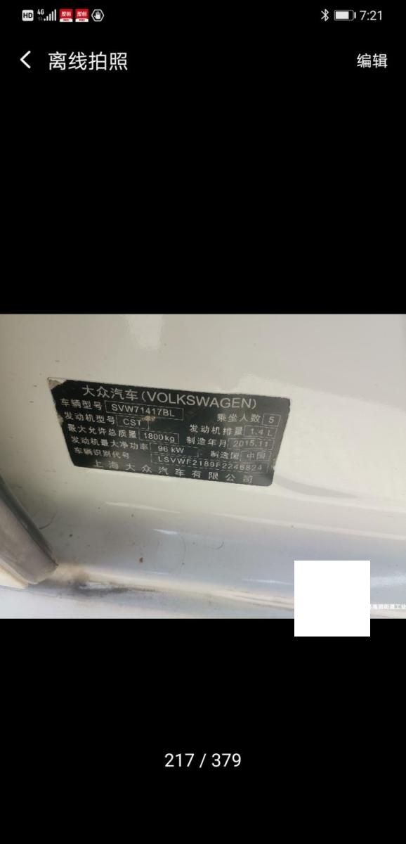 初次登记日期 2015-12-09 车辆名称 大众 朗逸