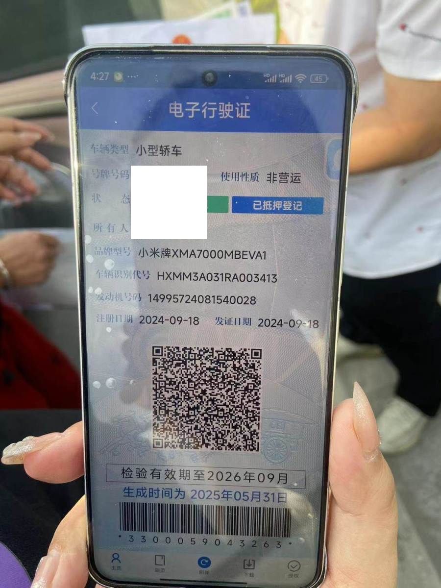 初次登记日期 2024-09-18 车辆名称 小米汽车 小米
