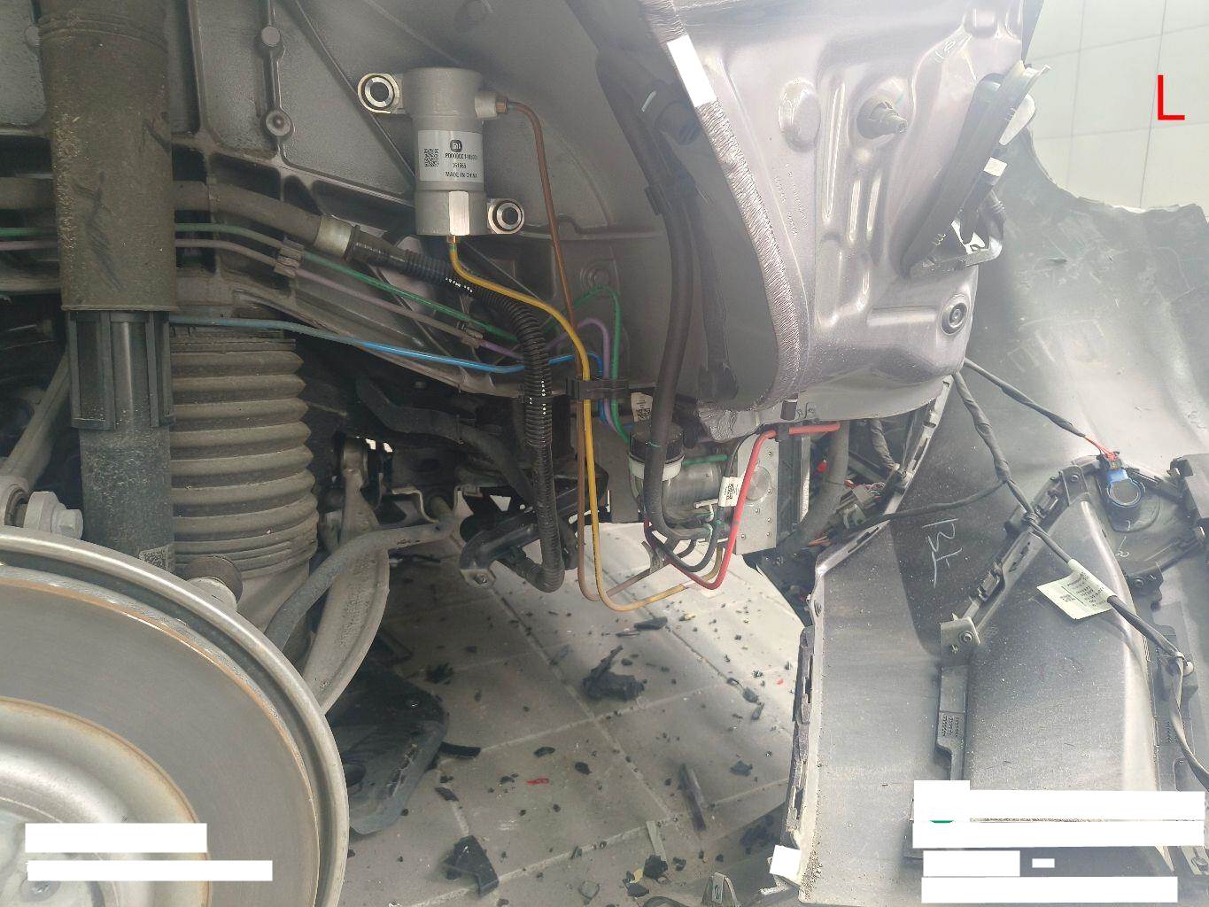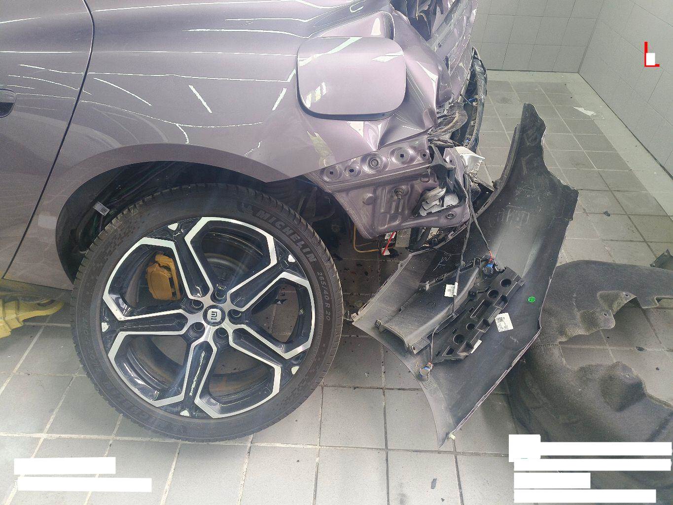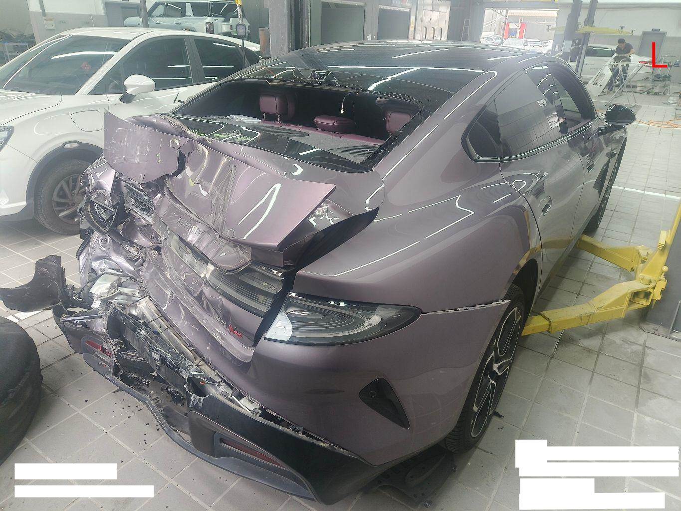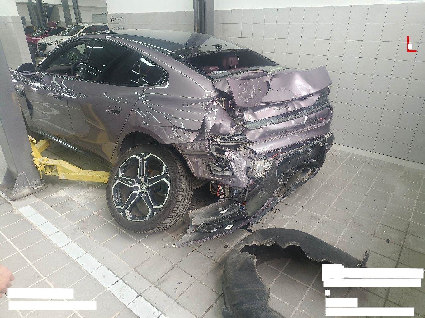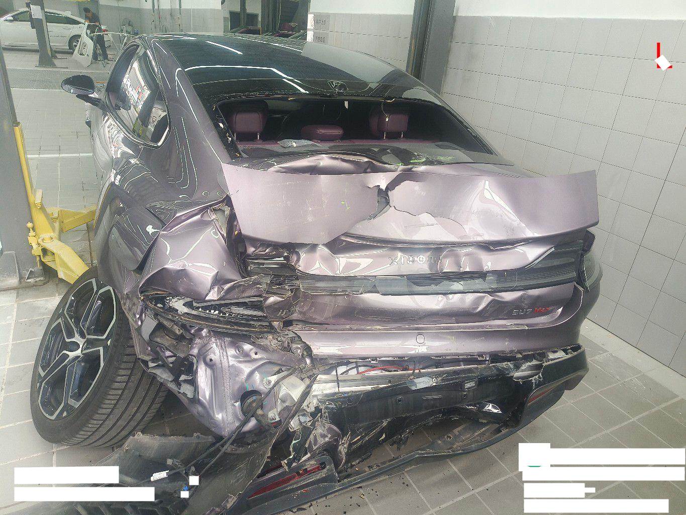 目前车辆停放在温州小米4S店,车身左后部位、尾部及电控设备损失较重,之前电池包表面胶制有刮痕,未拆解;