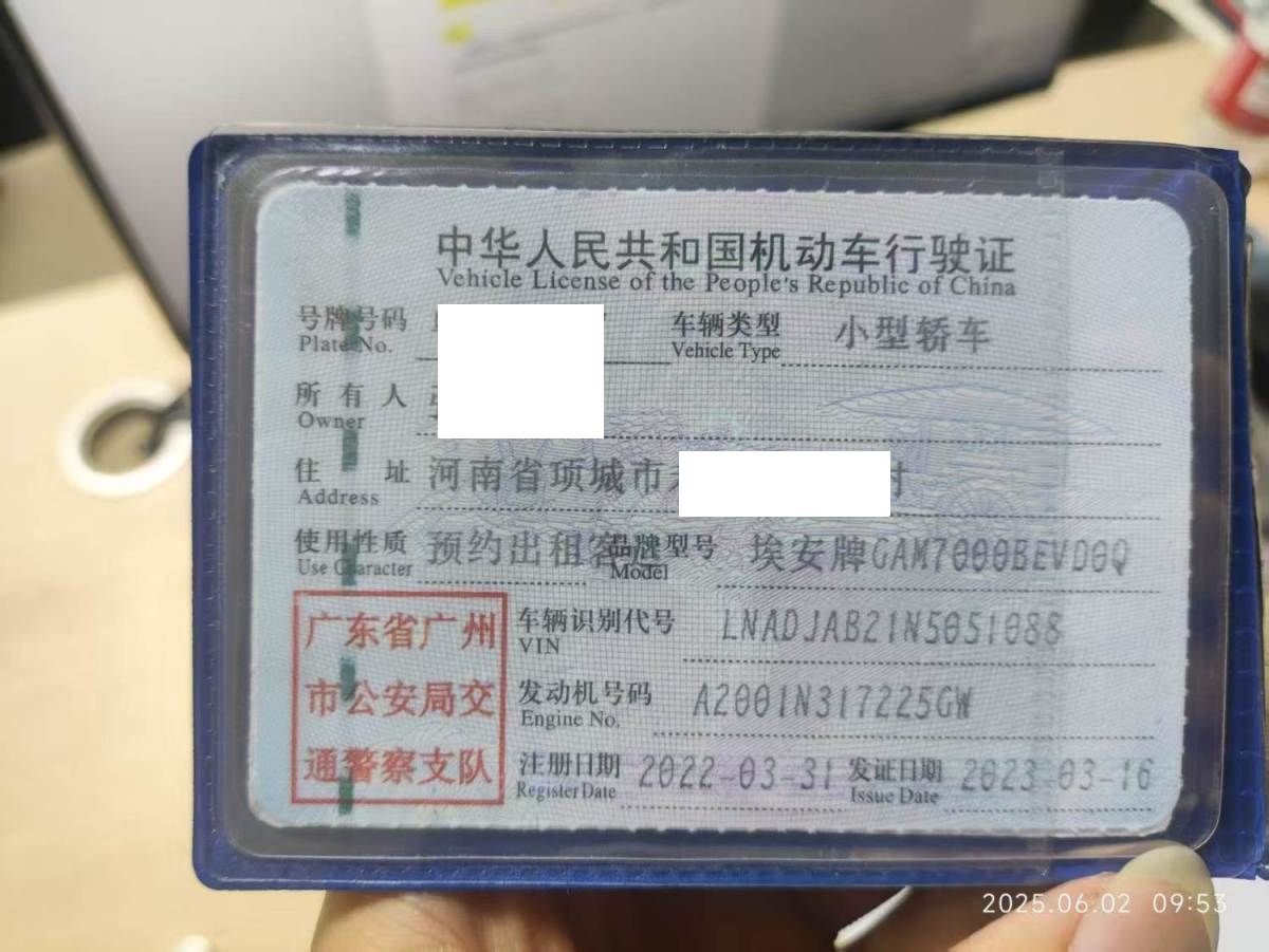 初次登记日期 2022-03-31 车辆名称 埃安牌