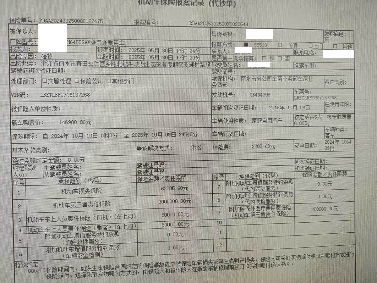 保险金额 ¥62285.6 预估维修金额 40000