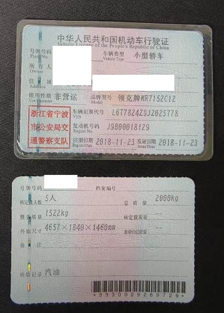 车辆归属地 浙江省宁波市 车辆停放仓库 浙江省慈溪市