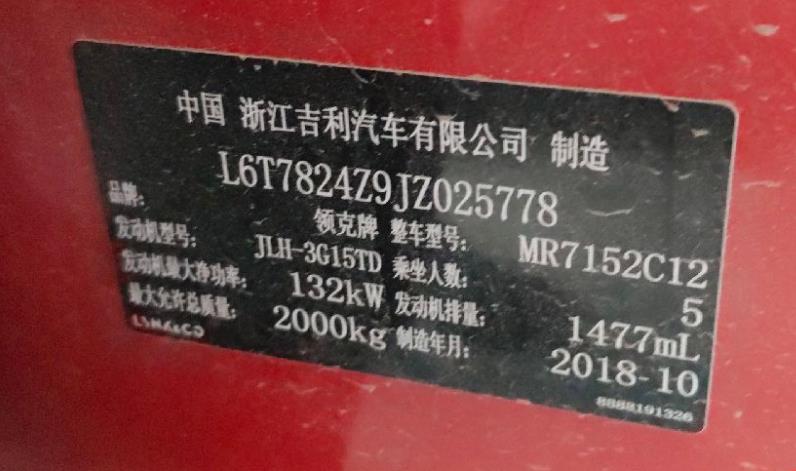 初次登记日期 2018-11-23 车辆名称 领克03