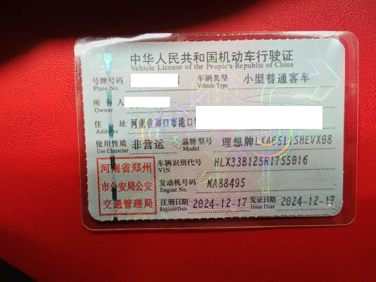初次登记日期 2024-12-17 车辆名称 理想汽车