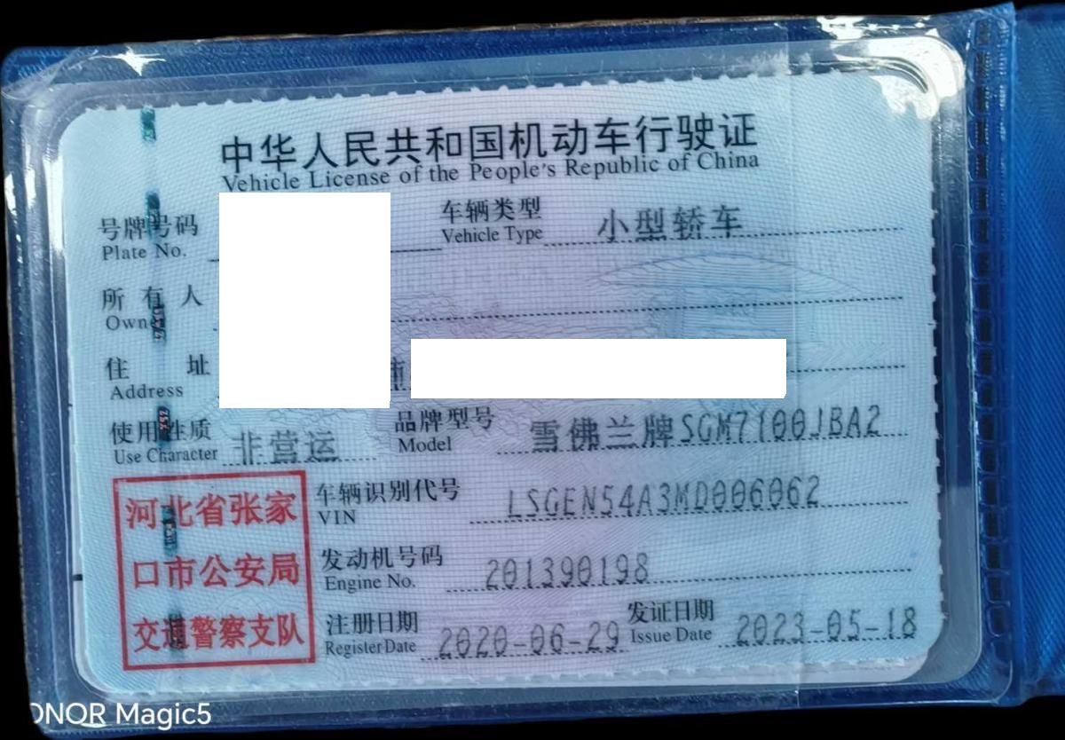 车辆归属地 河北省张家口市 车辆停放仓库 河北省张家口市