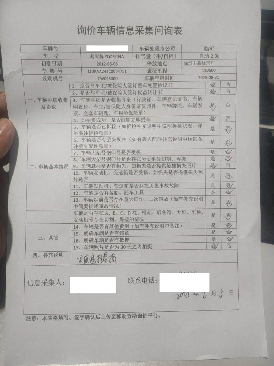 车架号是否受损 使用性质 非营运