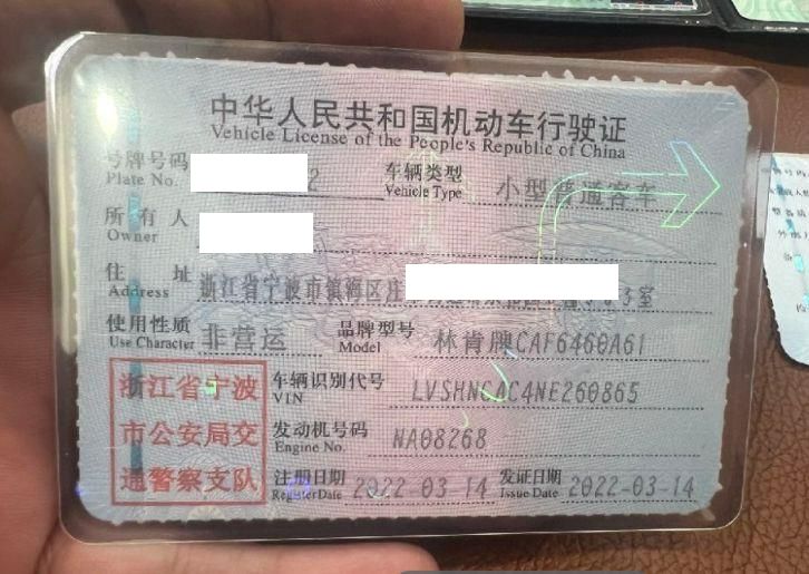 车辆归属地 浙江省宁波市 车辆停放仓库 浙江省宁波市