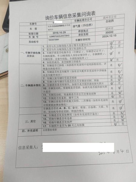 车辆归属地 山东省滨州市 车辆停放仓库 山东省滨州市
